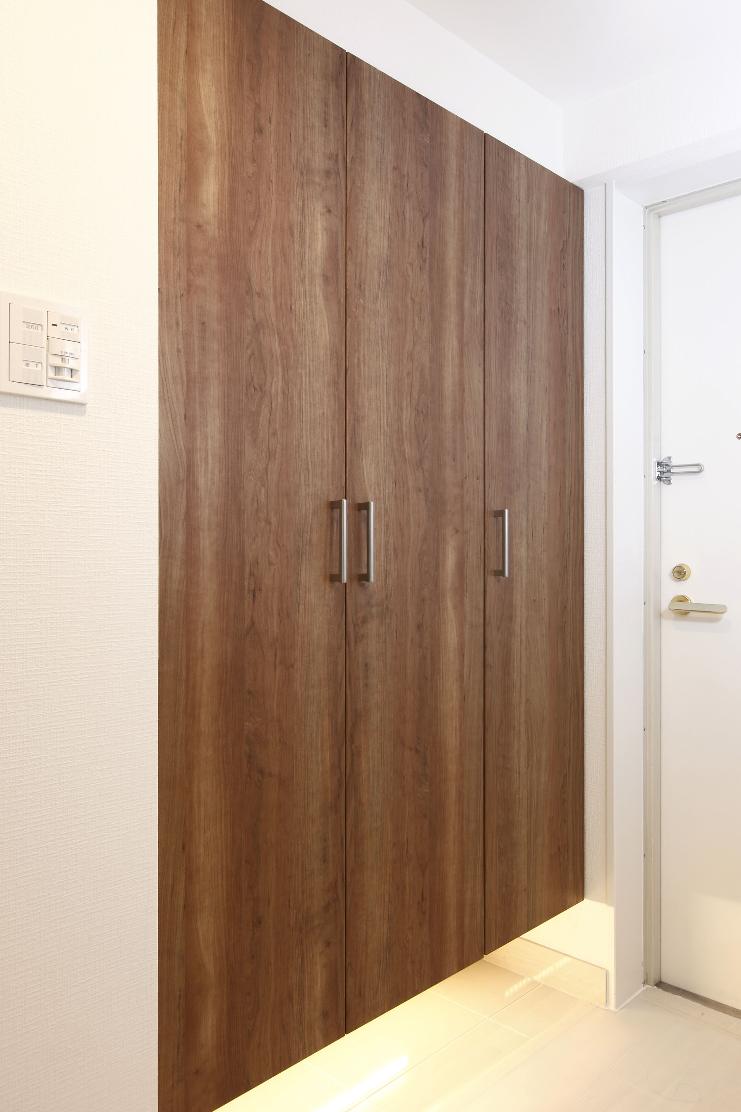 玄関は、右手には棚があります。ブーツなどの高さのある物もしっかり収納ができます◎