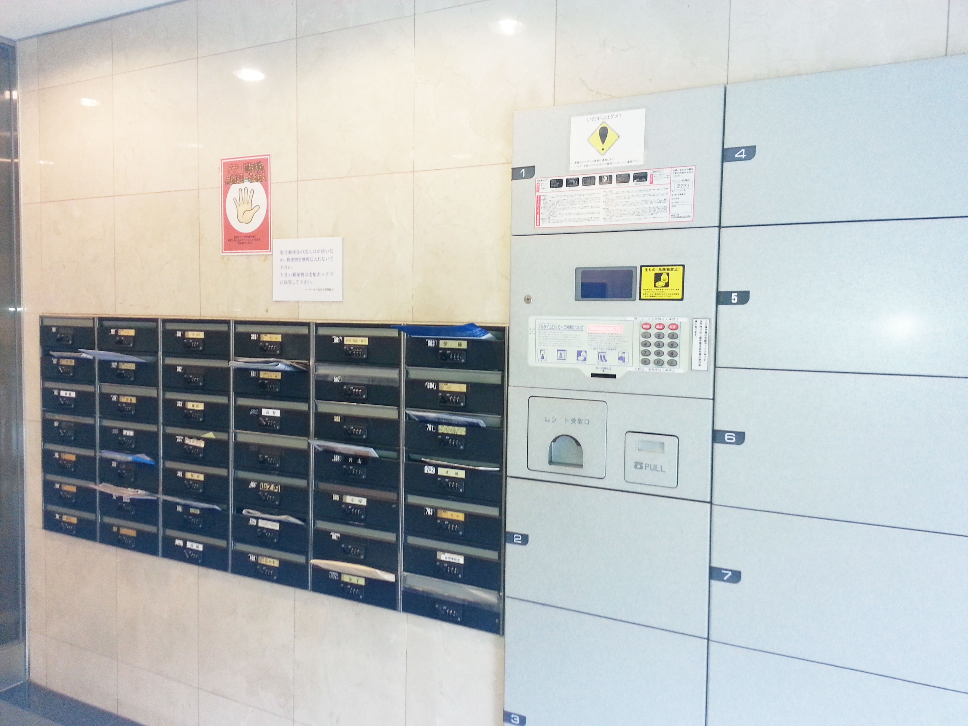 管理人常駐とオートロックなので安全ですね。また宅配ボックスも設置しております。